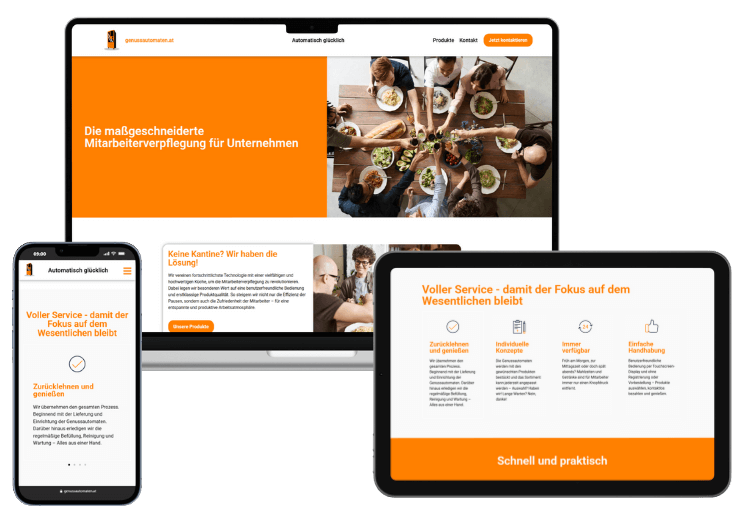 Für WS Genussautomaten haben wir eine frische und benutzerfreundliche Website entwickelt, die das Unternehmen modern und serviceorientiert präsentiert. Der Fokus lag auf einer klaren Produktdarstellung, damit Besucher schnell die passenden Automaten und Leistungen finden. Das Design wurde vollständig überarbeitet – mit ansprechenden Farben, klaren Strukturen und einer Bildsprache, die Qualität und Genuss vermittelt. Zudem haben wir die Inhalte gezielt auf die Bedürfnisse der Zielgruppe abgestimmt und eine klare Call-to-Action-Struktur integriert. Technisch wurde die Website umfassend optimiert, sodass sie auf allen Geräten flüssig funktioniert und schnell lädt. Ergänzt durch ein benutzerfreundliches Anfrageformular entstand ein moderner, funktionaler Online-Auftritt, der Service und Produktqualität perfekt kombiniert.