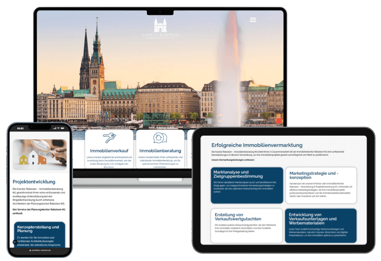 Für die Kanzlei Raboisen haben wir eine moderne, vertrauensvolle Website entwickelt, die Professionalität und Seriosität auf den ersten Blick vermittelt. Ziel war es, eine digitale Präsenz zu schaffen, die den hohen Anspruch der Kanzlei widerspiegelt und gleichzeitig Mandanten eine klare, intuitive Benutzerführung bietet. Das Design wurde bewusst dezent, aber hochwertig gehalten – mit klarer Typografie, ruhigen Farben und einer aufgeräumten Struktur, die Vertrauen und Kompetenz ausstrahlt. Darüber hinaus haben wir großen Wert auf Suchmaschinenoptimierung gelegt: von der Keyword-Analyse mit SISTRIX über strukturierte Leistungsseiten bis hin zu suchmaschinenfreundlichen Texten. Die Website ist vollständig für mobile Endgeräte optimiert und überzeugt durch schnelle Ladezeiten sowie eine angenehme Nutzererfahrung. Das Ergebnis ist ein moderner Online-Auftritt, der Mandanten gezielt anspricht und die Kanzlei digital optimal positioniert.